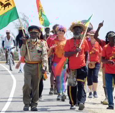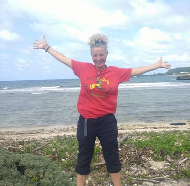 12 years ago Dee became Earth Rights Walker and spent a year walking 10 000 km to support a Law to End Ecocide the fifth law for peace to be enshrined at the UN. She then founded 'The One Love One Step Walk' creating ‘councils on the road’—community dialogues held along the route—in 2015. The most recent long distance walk in 2018 was ‘OLOSW 2: For the Oceans’- focusing on plastic pollution and connecting the work of Jamaica’s 18 Marine Protected Areas.. This walk directly informed the Gov. of Jamaica’s new law to end single use plastics. Dee was awarded the UBUNTU Humanitarian Award–Jamaica.